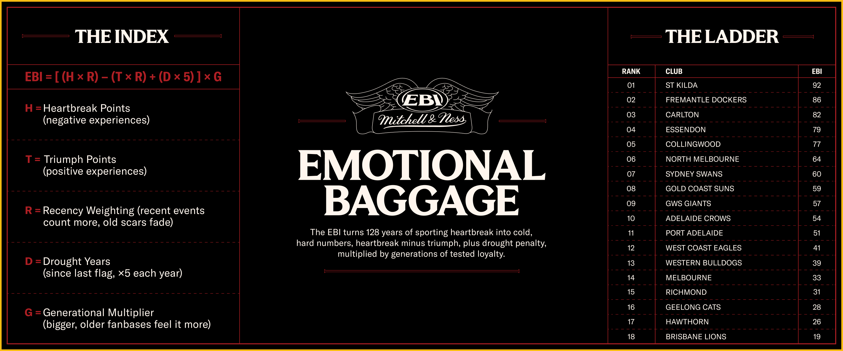 Turning 128 years of triumph and tragedy into team baggage.